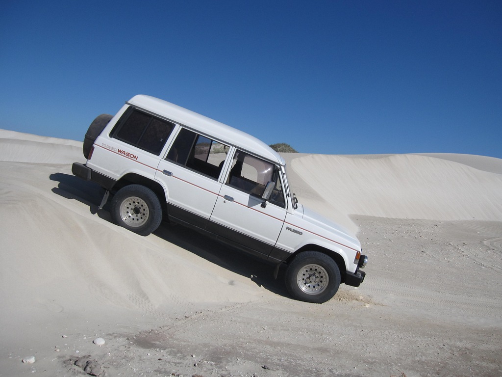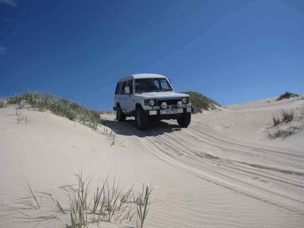 Also hab ich mir einfach einen Klappspaten und einen Kompressor gekauft. Um im Sand gescheit vorwärts zu kommen muss man ziemlich viel Luft aus den Reifen lassen, und die muss ja auch wieder rein. Deswegen der Kompressor. Das mickrige Teil was ich mir hier für $40 gekauft hab taugt aber nichts. Bis ich damit alle vier Reifen wieder voll hab kann ich auch einmal durch Australien krabbeln.