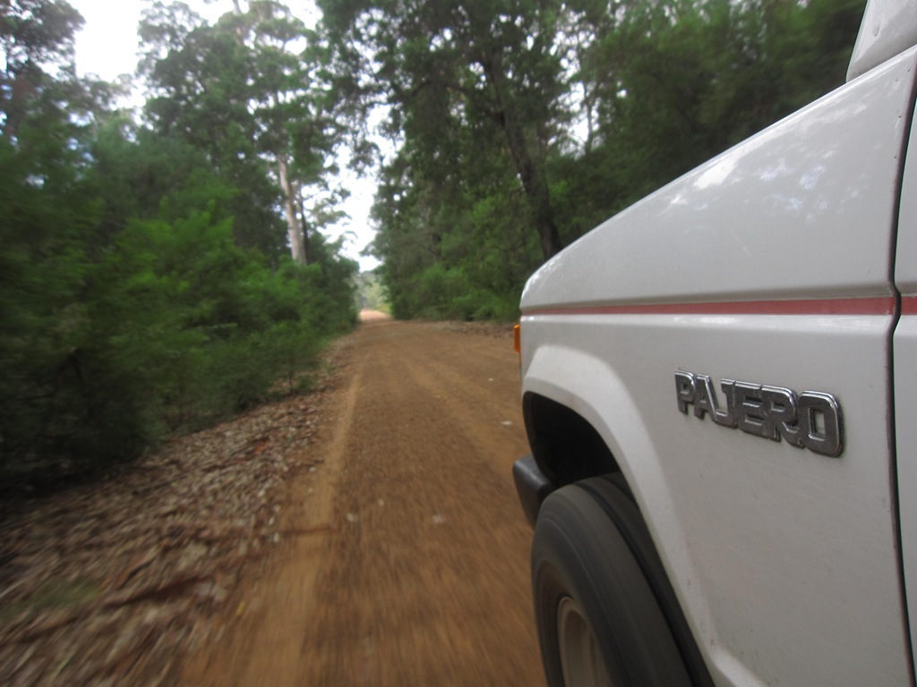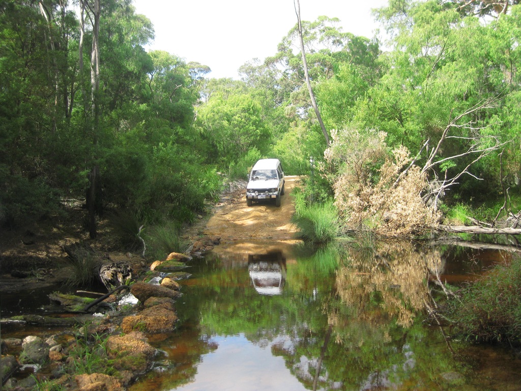 Ich bin echt froh, dass ich mir den Pajero, also einen 4WD-Auto gekauft habe. Hin und wieder gibt es zwischen zwei Orten einen direkten 4WD-Track und die längere normale Straße. Von Windy Harbour im D’Entrecasteaux National Park sind wir dann quasi querfeldein nach Walpole gefahren. War ein sehr sandiger, steiniger und staubiger Track. Das Beste war allerdings, dass der Track mitten durch einen Fluss ging der durchquert werden musste.