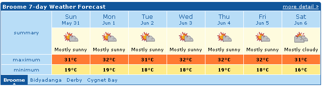 Ansonsten gibt es nicht so viel neues zu Berichten. Ich hab noch keinen Job hier in Broome gefunden. Es sind einfach zu viele andere Backpacker hier und die wenigen Jobs die es gibt sind schnell vergeben. Aber das macht nichts, denn ich kann auch von hier für die HYVE AG aus München weiterarbeiten. Das heißt also den ganzen Tag an der frischen Luft in der prallen Sonne sitzen und programmieren. Und nebenbei auch noch braun werden. Mir gefällt’s!