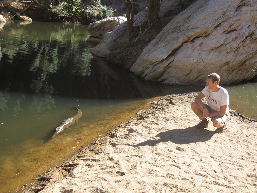 Der erste Stopp auf der Gibb River Road war “Tunnel Creek”. Eine Höhle mit Knietiefem Wasser und einem kleinem Pool in der Mitte. Danach ging es zur “Windjana Gorge” wo wir dann auch unsere ersten Krokodile in freier Natur gesehen haben. Aber das waren ja nur kleine süße “Freshies”, also Freshwater Krokodile. Den Australiern nach tun die nichts und können gar nicht beißen 🙂 Eine Frau war dort sogar Schwimmen…