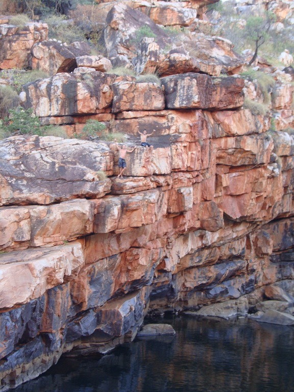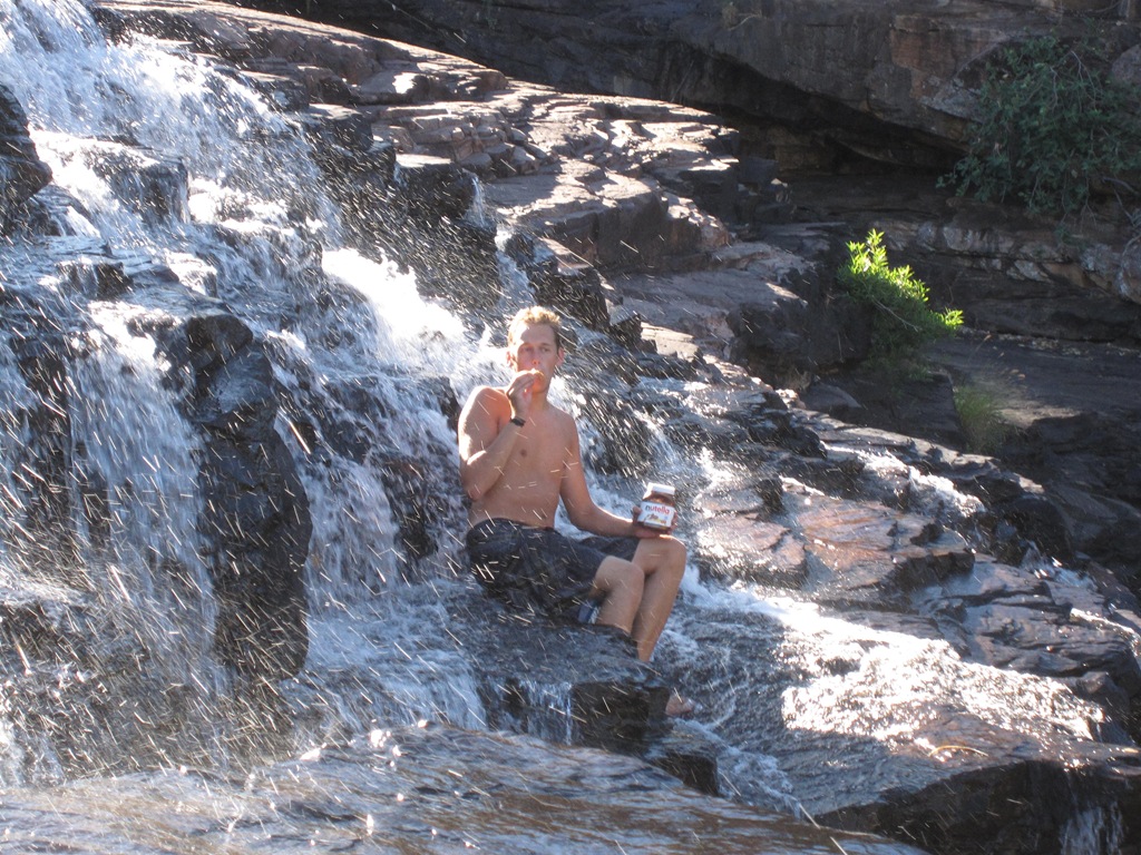 Dann ging es weiter zur “Bell Gorge”, “Manning Gorge”, “Barnett Gorge” usw. Einfach traumhaft. Bei manchen Gorges (Schluchten, meistens mit Wasserfällen und Pools) konnte man hochklettern und in die Pools springen. Teilweise ca. 10 Meter hoch und bei der “Manning Gorge” stand ich oben direkt im Wasserfall und bin im Wasserfall runter gesprungen. Total geil!! 😀